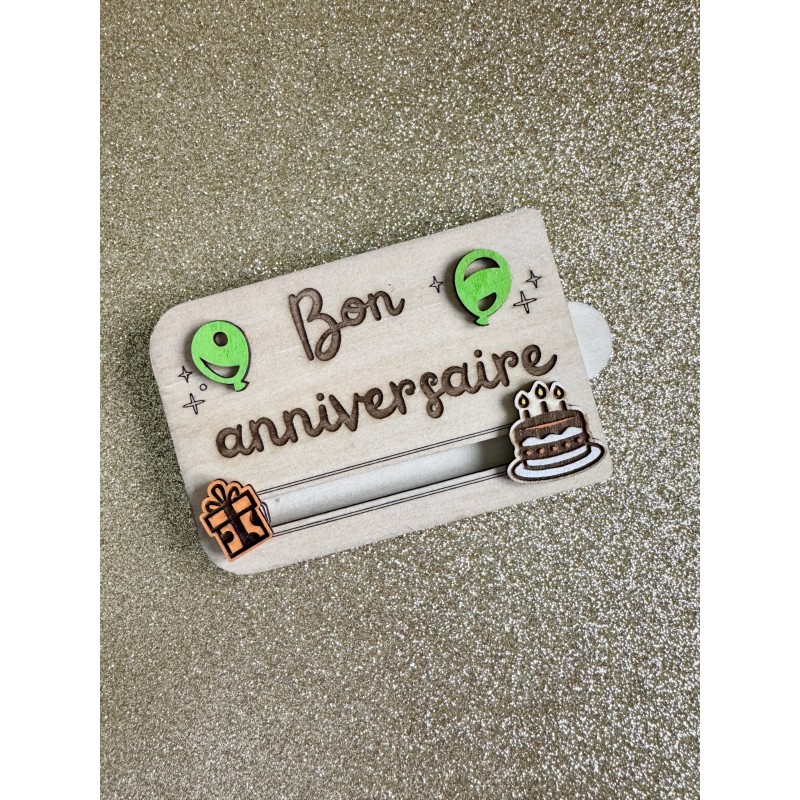 Etui coulissant en bois avec curseur pour y glisser une carte cadeau