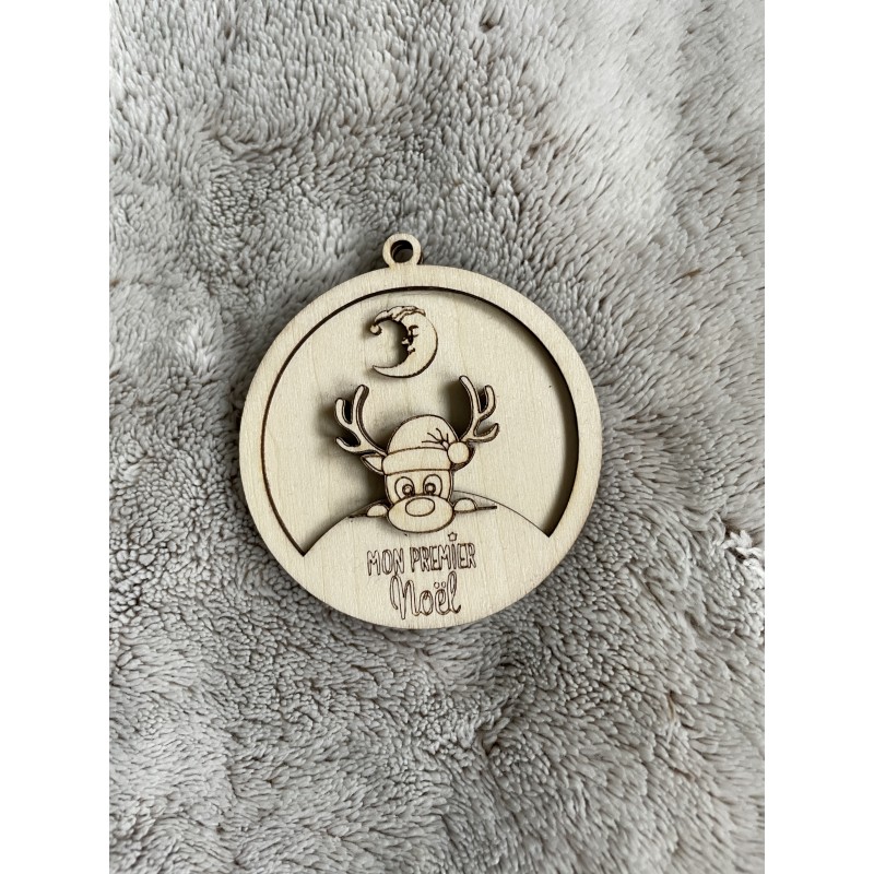 boule de Noël en bois gravée, 3 couches, 6 cm